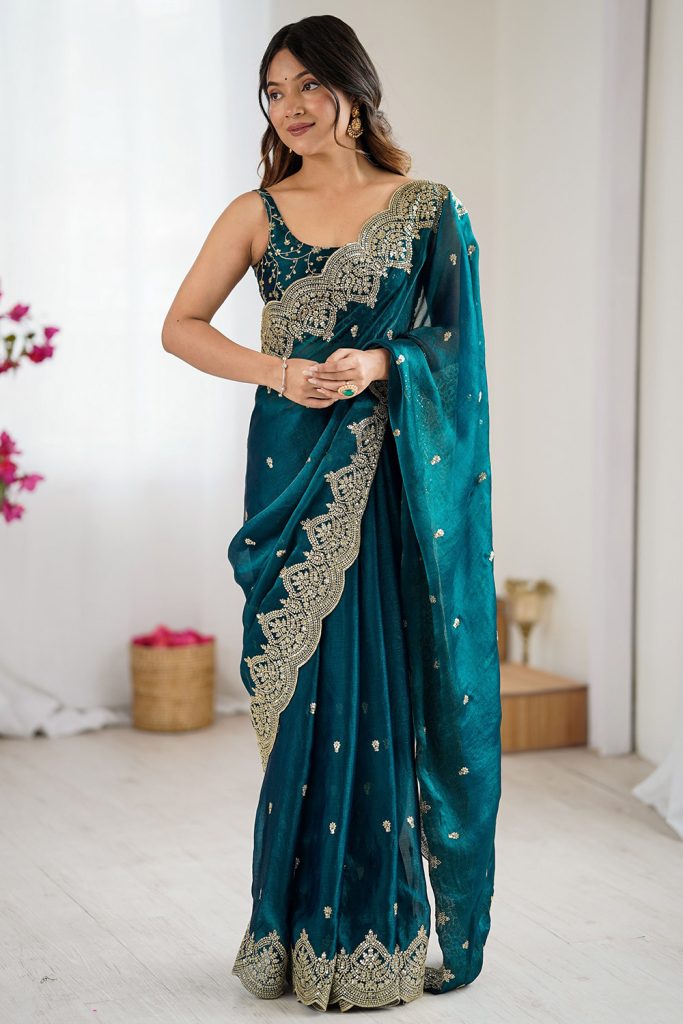 - Organza sarees for a crisp, modern aesthetic with subtle translucency.