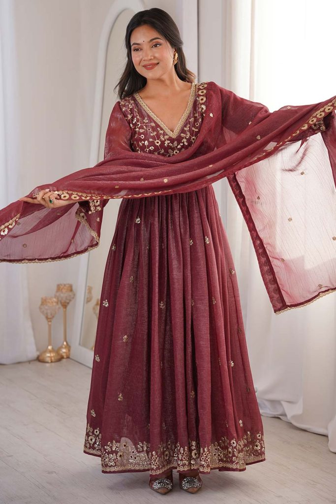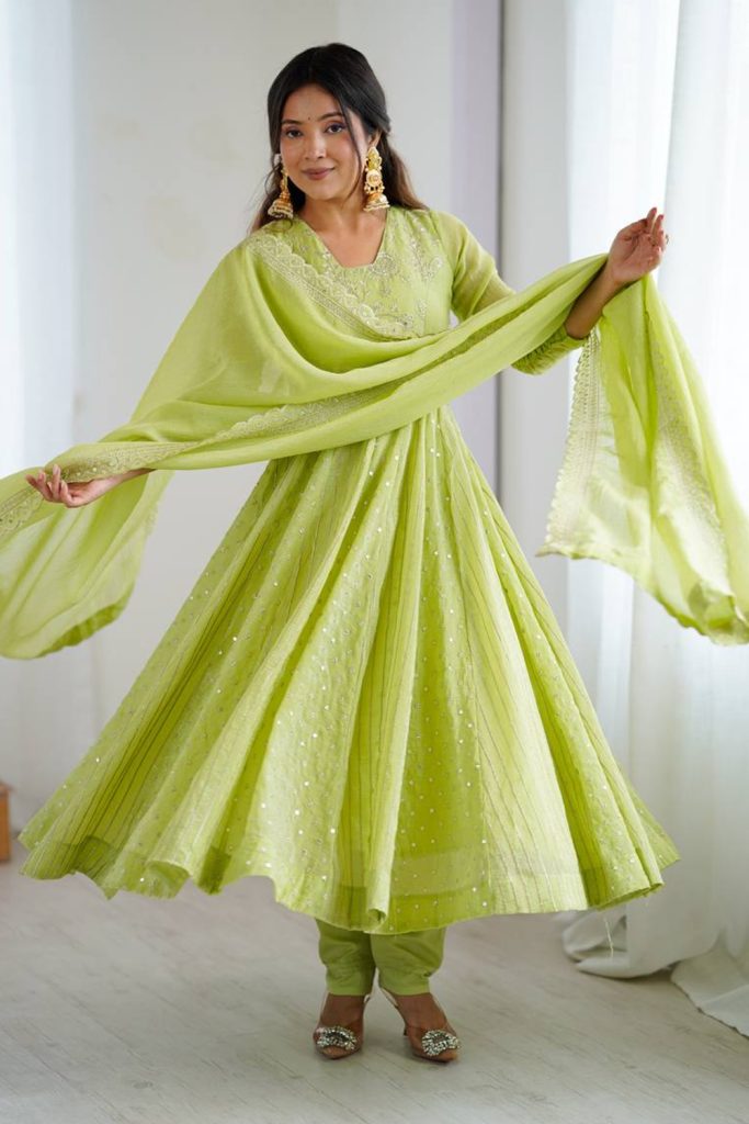 Pair an Anarkali with statement earrings, embellished juttis, and a delicately draped dupatta to complete the look.