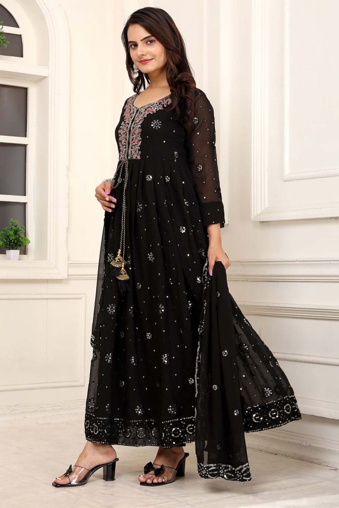 The Anarkali suit remains one of the most beloved Eid outfits among women in the UK. Known for its flowing silhouette and royal elegance, the eid anarkali creates a graceful look perfect for festive occasions.