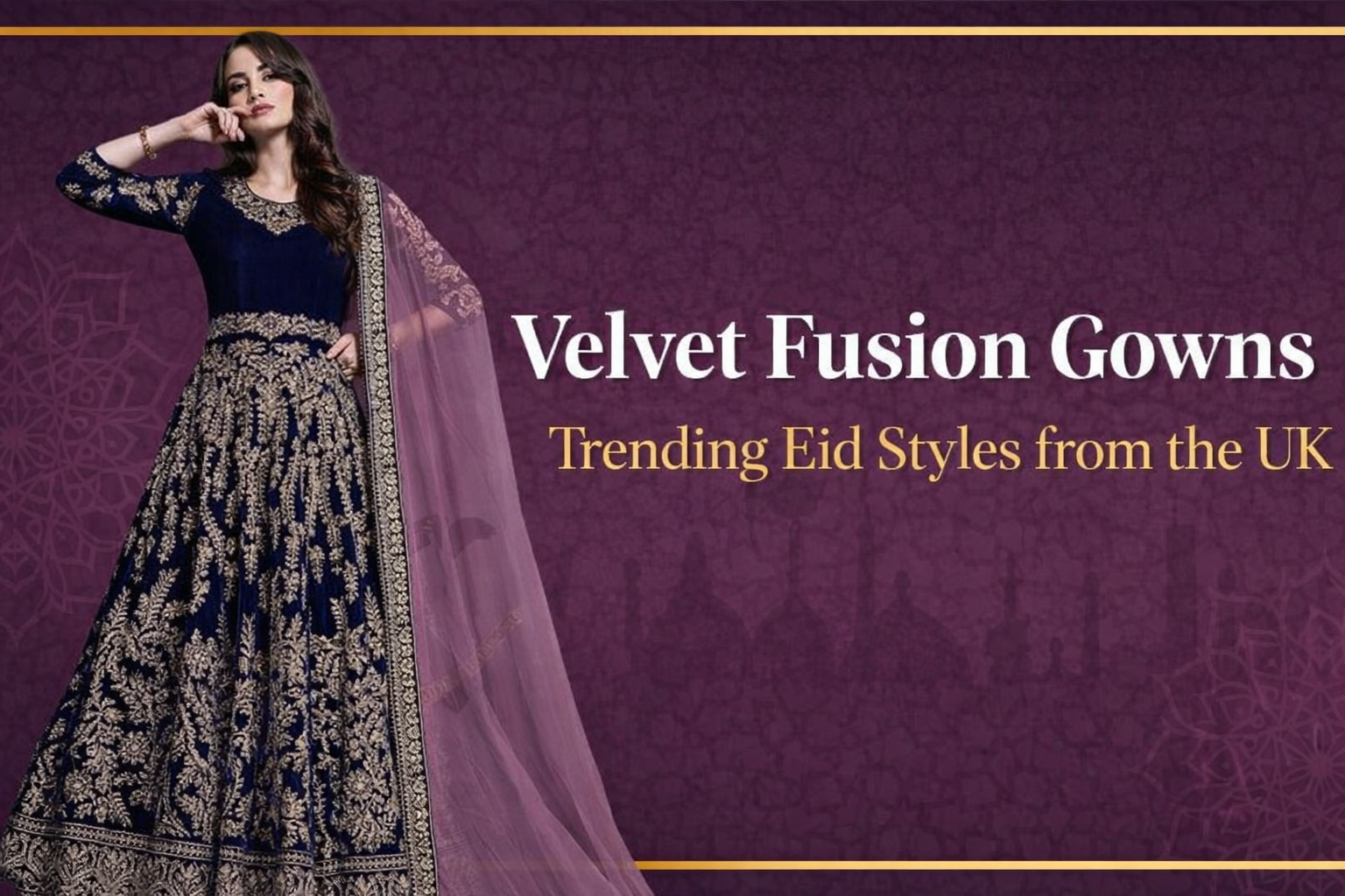 What makes velvet fusion gowns suitable for Eid celebrations in the UK?